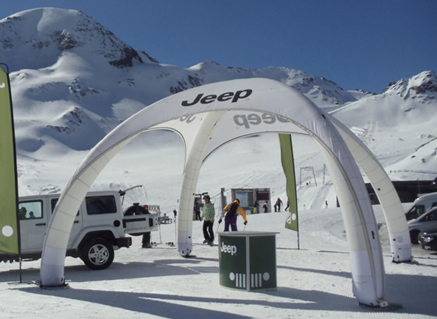 Våra eventtält är extremt enkla att installera och kräver ej kontinuerlig lufttillförsel. När de är uppställda och säkrade, står de där och gör sin uppgift, tyst och upplysande i fullfärgstryck.